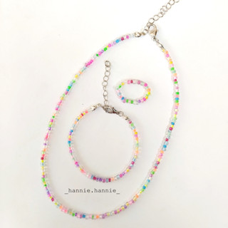 Set hạt cườm rainbow cầu vồng mix trắng handmade - Combo vòng cổ vòng tay nhẫn dành cho nam nữ đơn giản