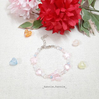 (Xanh lá/Xanh biển/Hồng/Tím) Vòng tay pha lê hologram bướm ngôi sao trái tim - Dây đeo tay nữ handmade đơn giản