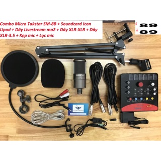 combo bộ livétream sound card icon uopd pro. mic takstar sm8m.chân kẹp màng lọc đủ phụ kiện kèm theo