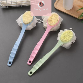 Bàn Chải Cọ Lưng Kèm Bông Tắm Mềm Mại, Bàn Chải Chà Lưng 2 Mặt Tiện Lợi