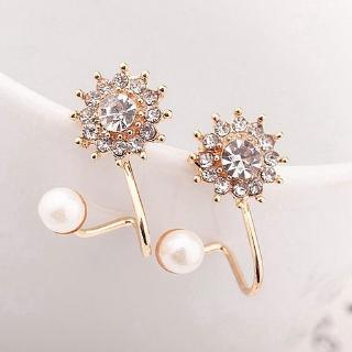 Exquisite Cute Full Diamond Snowflake Sweet Pearl Stud Earrings Girl Student