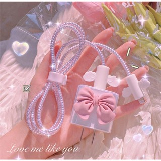 Phụ Kiện Bảo Vệ Dây Cáp Sạc Bằng Silicon Trong Suốt Hình Nơ Dễ Thương