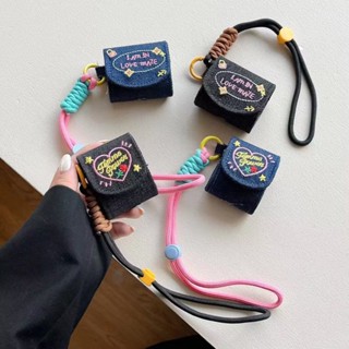 Vỏ Bảo Vệ Hộp Sạc Tai Nghe Bluetooth Thêu Họa Tiết Jean Dễ Thương Thời Trang