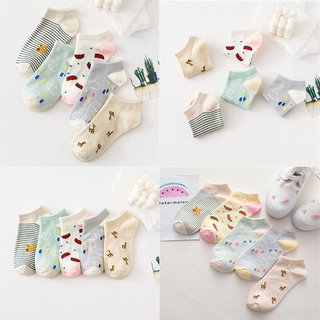 Set 5 đôi tất cotton hoạ tiết trái cây dễ thương thời trang cho nữ
