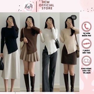 [HCM-hoả tốc]Áo Len Tăm Tay Dài Xẻ Tà Chéo Eo 4 Màu Basic Siêu Tôn Dáng