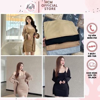 [HCM-hoả tốc] Set Đầm Cặp Thun Gân - Đầm Kèm Khoác Ôm Body 4 Màu Cơ Bản