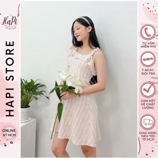 [HCM-hoả tốc] Đầm 2 Dây Bèo Kẻ Dọc - Rainbow Dress Siêu Xinh Dạo Phố Đi Chơi