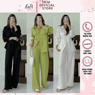 [HCM-hoả tốc] Set bộ sơ mi tay ngắn quần dài chất đũi gân sọc siêu sang - Set bộ nữ sơ mi tay lỡ quần dài chất đũi