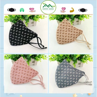 Khẩu trang vải cotton họa tiết D chống tia UV, chống bụi mịn có dây rút điều chỉnh thông thoáng
