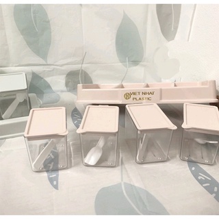 Bộ 4 hũ đựng gia vị trong suốt có nắp cho nhà bếp thông minh