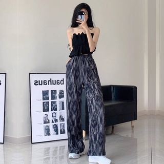 Happy-store Quần ống rộng nữ Happy Store những bông hoa in ấn cao cạp chun chất vải cực mát phong cách Hàn Quốc