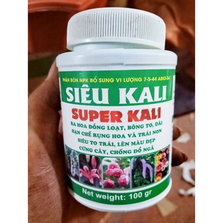 Siêu Kali 100gr_Phân bón lá NPK 7-5-44 ABIO-34_ra hoa nhiều, bông to, hạn chế rụng hoa, quả non, to trái, cứng cây_Kaly