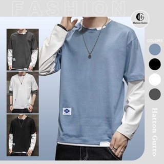 Hatton Gutto COD Áo Thun Tay Dài Cổ Tròn Giả Hai Lớp Thoáng Khí Thời Trang Mùa Hè Cho Nam