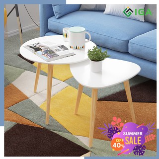 Bàn trà hình trứng chân gỗ sồi tự nhiên, trang trí derco phong cách hiện đại- Havaco