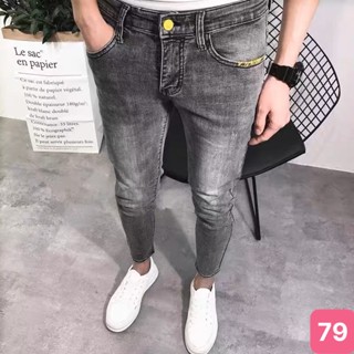 Quần jeans nam màu xám nhạt không rách chất bò cao cấp co dãn 4 chiều, rin lưng thun 10AD29 kiểu mới