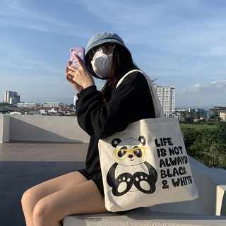 Túi vải tote cỡ lớn đi học đi chơi hình Gấu Trúc dễ thương