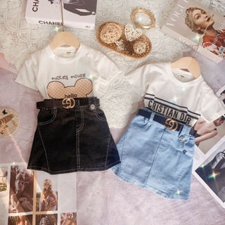 (xả kho) sét áo phông kèm chân váy bò mềm 2 màu cho bé