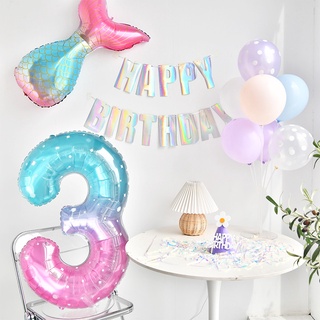 Bong Bóng Lá Nhôm 40 Inch Hình Nàng Tiên Cá / Số Màu Sắc Gradient Sáng Tạo Dành Cho Trang Trí