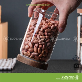 Lọ thủy tinh nắp gỗ JIMMEAL bảo quản độ khô trang thí nhà cửa nhiều size - ECOBABO