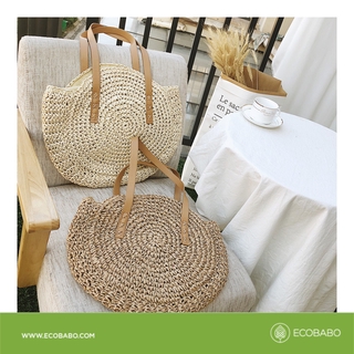 Túi cói phối dây da khổ lớn vintage đan thủ công Ecobabo