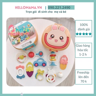 Bộ đồ chơi xúc xắc gặm nướu silicon cầm tay Dumoon , nhựa ABS an toàn cho bé có (hộp thỏ vàng)
