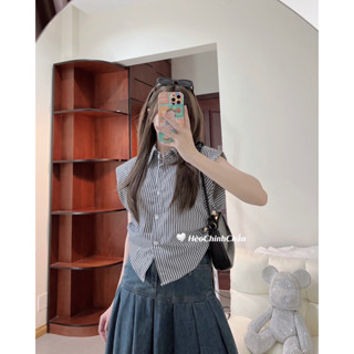 (Ảnh Thật) Áo Sơ Mi Sọc Cánh Dơi Nhún Eo Hèo Chinh Chắn