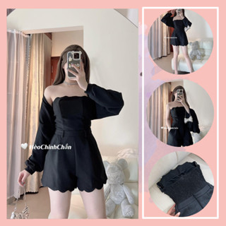 (Ảnh Thật) Set Jumpsuit Ngắn Kèm Áo Khoác Hèo Chinh Chắn