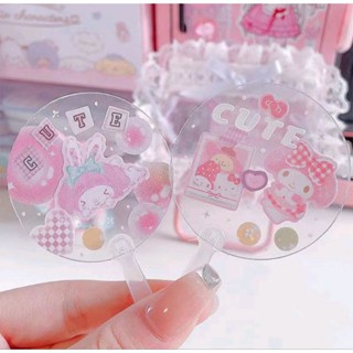 Set làm quạt mini móc khóa acrylic DIY đính sticker/ ảnh dễ thương