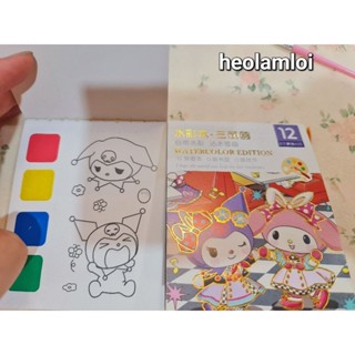 SỔ TÔ MÀU NƯỚC NÉN 12 TRANG CHỦ ĐỀ KITTY MY MELODY THƯ GIÃN KÈM CỌ.
