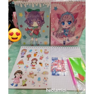 SỔ 4 IN 1 STICKER TRANH ĐÍNH HẠT ĐÁ LƯU TRỮ ĐA NĂNG DIY SIZE 17,5CM, CHỦ ĐỀ CÔ BÉ CHIBI