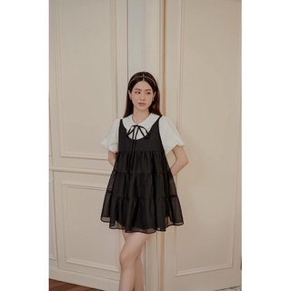 Đầm tơ hai lớp dáng babydoll, Váy tơ tay dài bánh bèo tiểu thư