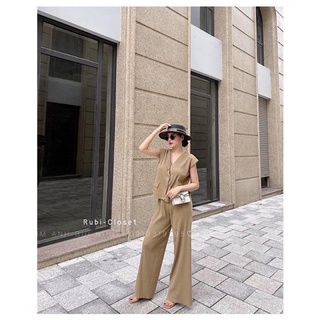 Set Len Mongtoghi Cao Cấp, Set Áo Len Sát Nách Phối Quần Ống Suông Quảng Châu