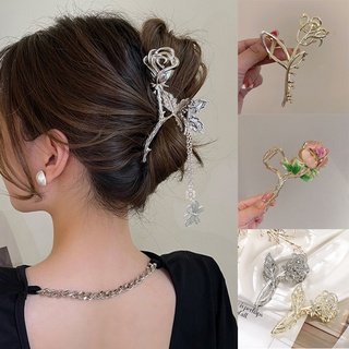 Kẹp Tóc Kim Loại Hình Hoa Hồng Đính Đá Phong Cách Hàn Quốc