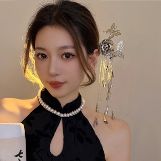 Trâm Cài Tóc Hình Hoa Cúc Đính Ngọc Trai Và Tua Rua Phong Cách Trung Hoa Cổ Điển