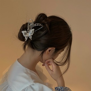 1 Elegance Temperament Women Hair Clip Metal Hollow Hair Claw Butterfly Pendant Kẹp Tóc Thời Trang Vintage