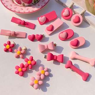 Kẹp Tóc Đính Nơ Trái Tim Màu Hồng Dễ Thương Cho Bé Gái