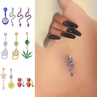 Khuyên Rốn Hình Rắn Và Hoa Hướng Dương Dát Đá Zircon Nhiều Màu Sắc Bằng Thép Không Gỉ Hoang