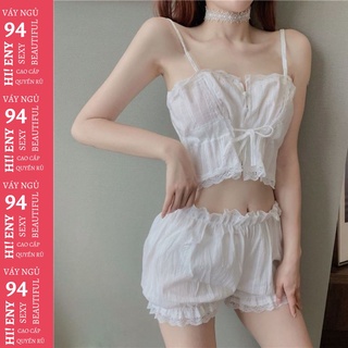 Đầm ngủ 2 dây gợi cảm Váy ngủ xuyên thấu sexy bèo xếp ly 2 tầng tặng quần chíp M92