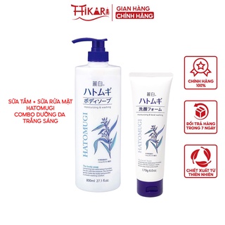 Combo Bộ sản phẩm dưỡng da trắng sáng ỹ dĩ Sữa tắm 800ml - Sữa rửa mặt REIHAKU HATOMUGI 170g