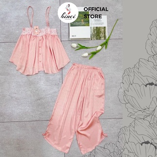 Đồ ngủ 2 dây bản to mặc nhà, Quần dài phối ren thân giữa lạ mắt [DN114DAI]