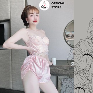 Đồ ngủ sexy nữ Bộ ngủ hai dây có mút Set ngủ gồm áo phối ren và quần có dây rút [DN46]