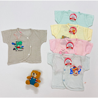 Áo cộc kẻ sơ sinh cúc chéo cho bé 0-8kg
