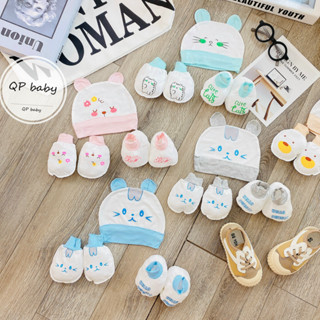 Set mũ bao tay chân thun lạnh tai thỏ cho bé