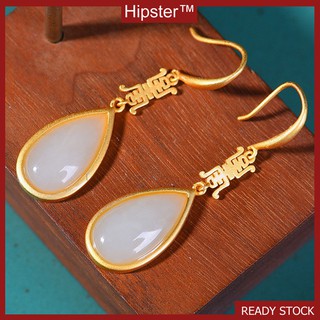 Khuyên Tai Bạc S925 Đính Ngọc Bích Thiết Kế Mới Cá Tính Thời Trang