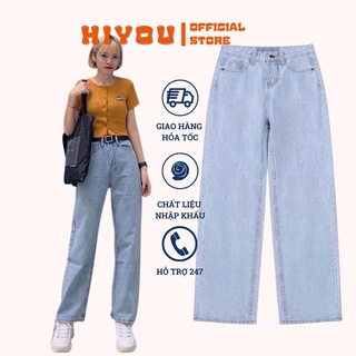 Quần jean nữ lưng cao ống suông,rộng Hiyou, Quần bò nữ lưng cao ống rộng style hàn quốc dáng suông hot 2022 TR01