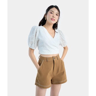 Quần Short Nữ Thời Trang HNOSS Diễu Chỉ Trắng HNQSH014