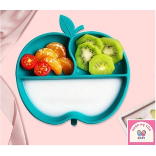 Khay ăn dặm silicon hình táo có đế hút chân không chống đổ
