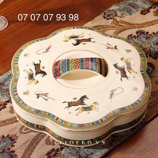 KHAY MỨT GỐM SỨ CAO CẤP- hoạ tiết BÁT MÃ TRUY PHONG (được kiểm tra hàng)