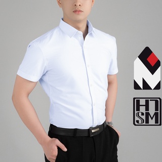 Áo sơ mi nam ngắn tay HTSM MAGNOR vải Polyspun trơn, chống nhăn, cổ bẻ, dáng slimfit công sở không túi ngực