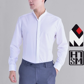 Áo sơ mi nam dài tay HTSM MAGNOR Malin vải Polyspun trơn chống nhăn, cổ tàu, dáng slimfit che khuy